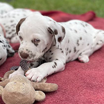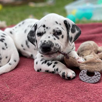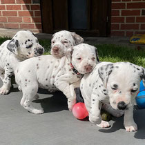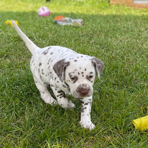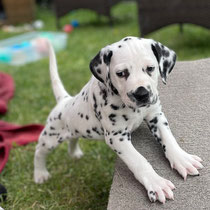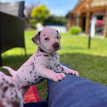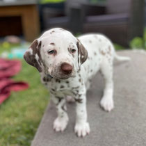 Sie lernen schon sehr viele Dinge im alltagsleben einer Familie kennen, spielen mit Kindern unterschiedlicher Altersgruppen, schauen neugierig beim Rasenmähen zu, spielen mit anderen Tieren und hören schon unterschiedlichste Geräusche.
