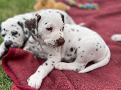 Spieleinhalten mit der Mama und erstes Kräftemessen unter den Geschwistern machen auch richtig Spaß, nach jedem Spiel muss aber auch immer erstmal ausgiebig in der Sonne oder im Schatten geschlafen werden.